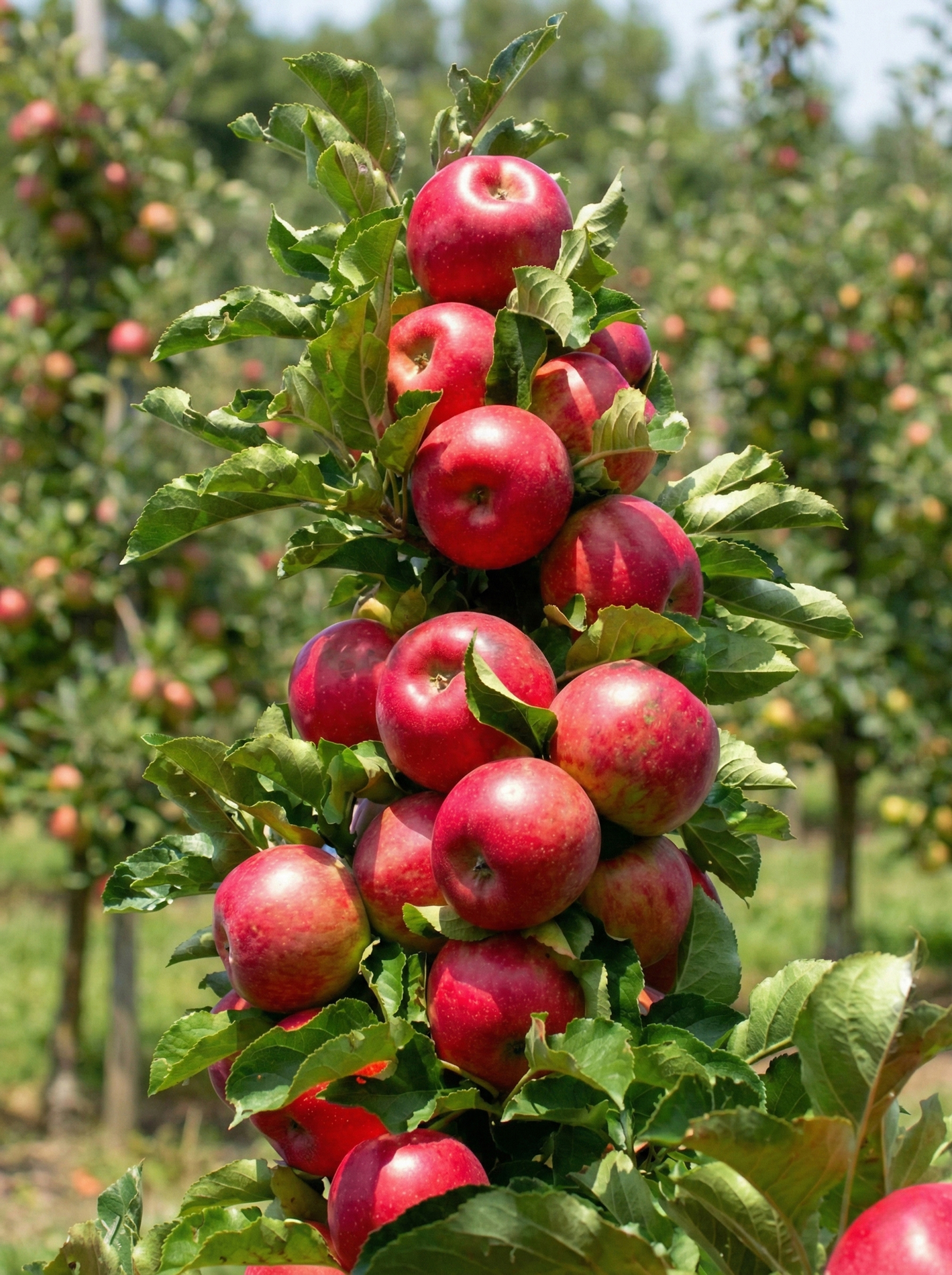 Jabłoń kolumnowa StarCats (Malus domestica 'StarCats’) to elegancka, wąskokolumnowa piękność, która wprowadzi do ogrodu nowoczesny rytm i oszczędzi cenną przestrzeń. Wiosną zachwyca obfitym, biało-różowym kwitnieniem, a latem i jesienią jej smukłe pędy zdobią lśniące jabłka z apetycznym, czerwonym rumieńcem — dekoracyjne i kuszące na pierwszy rzut oka.