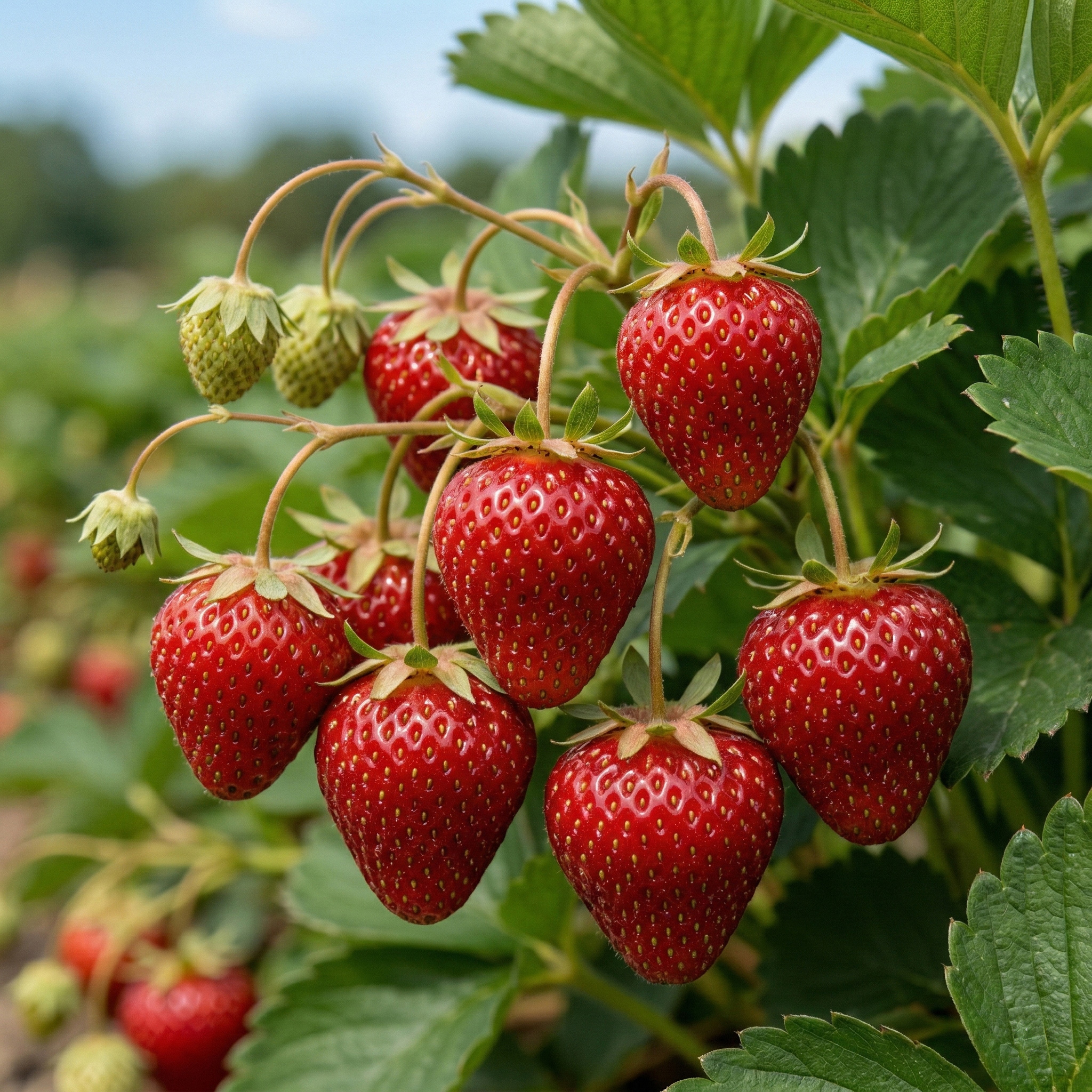 Truskawka Senga Sengana (Fragaria × ananassa) to klasyka, która nigdy nie wychodzi z mody – ceniona za niezawodny plon i owoce o wyjątkowo apetycznym wyglądzie. Karminowo‑czerwone truskawki pięknie prezentują się na roślinie i na talerzu, przyciągając wzrok intensywną barwą i naturalnym połyskiem. To odmiana, która wnosi do ogrodu nutę tradycji, a jednocześnie daje radość z pierwszych, długo wyczekiwanych zbiorów.